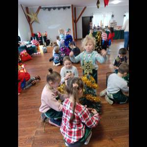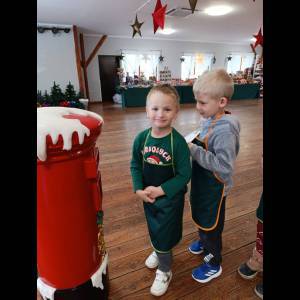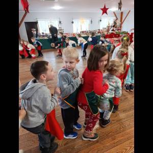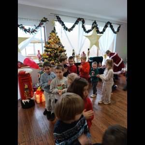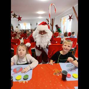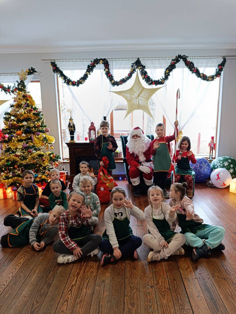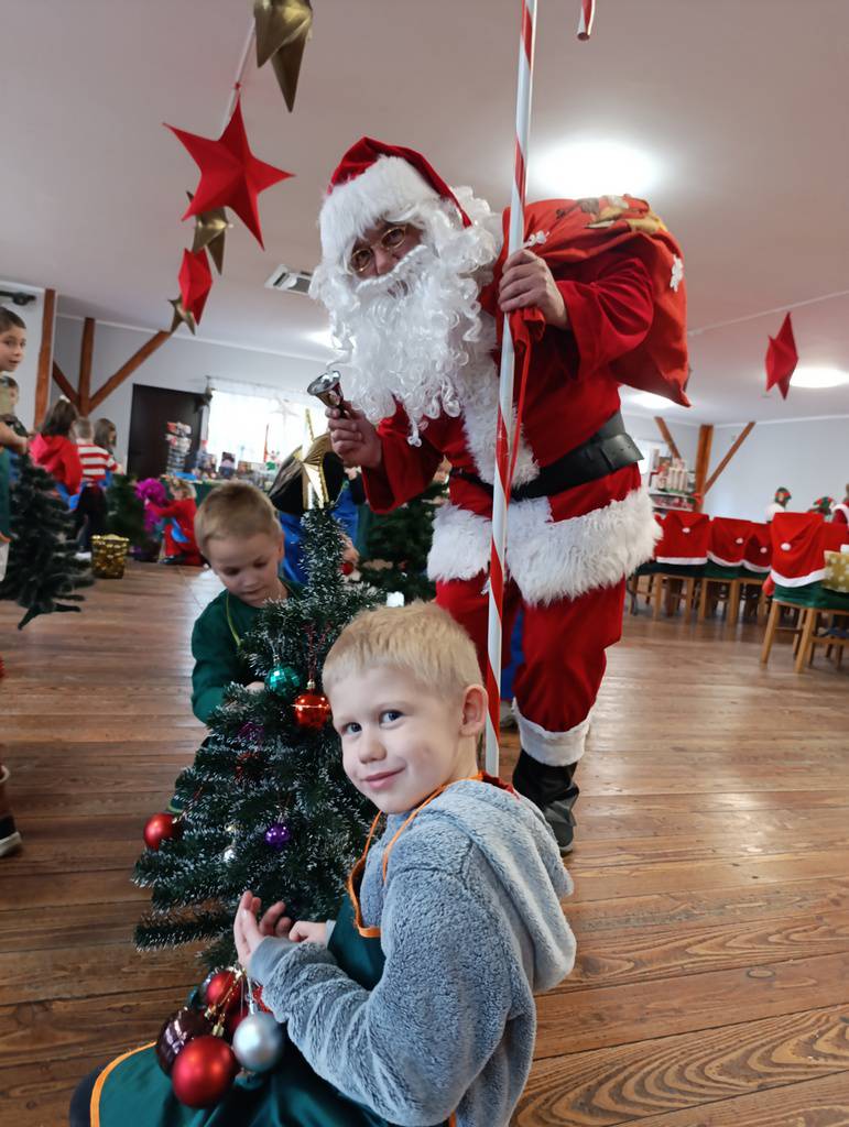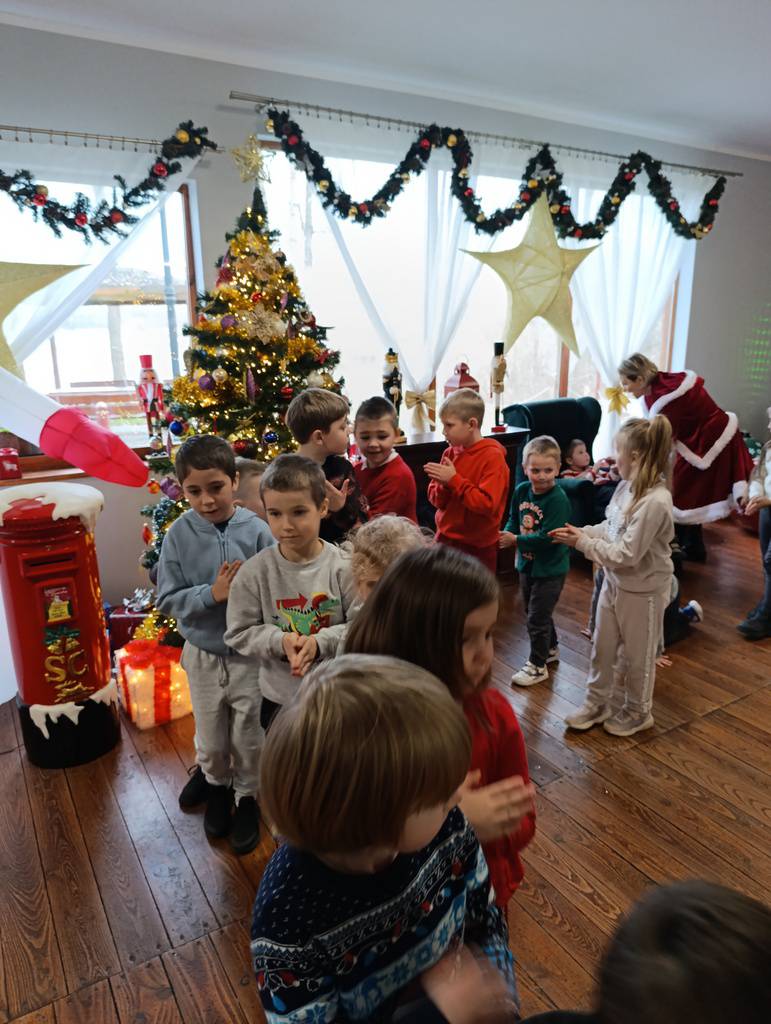 Dwie grupy z Przedszkola w Ciechowie, Smerfy i Żabki wybrały się na wycieczkę w poszukiwaniu Mikołaja. Na miejscu przywitały je Elfy oraz niezastąpiony Mikołaj! Pięknie wystrojona sala, wszechobecna czerwień i świąteczna muzyka, od razu wprawiła wszystkich w świąteczny nastrój.