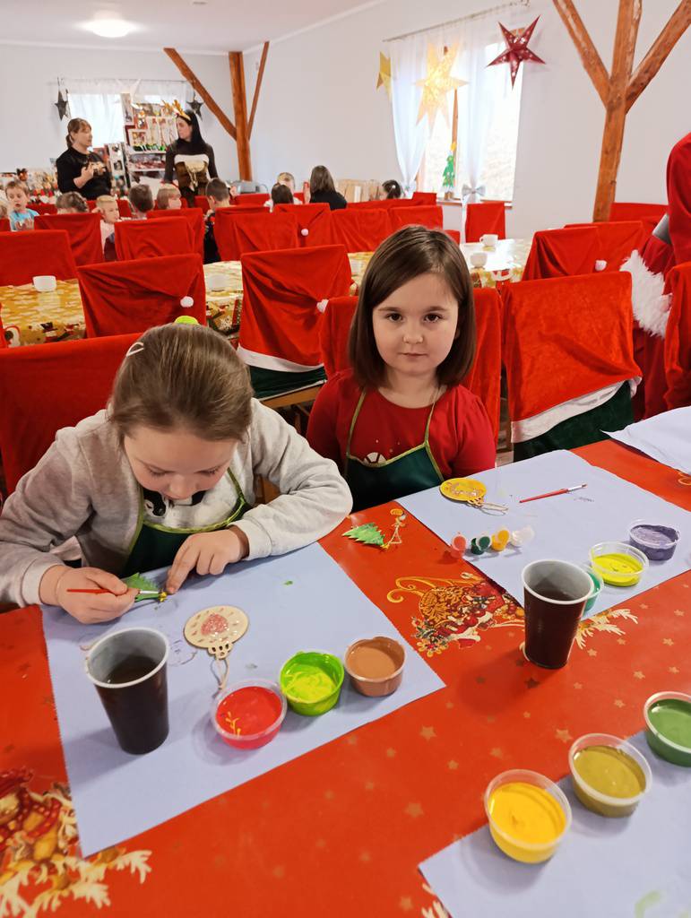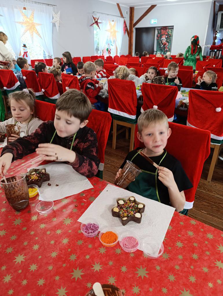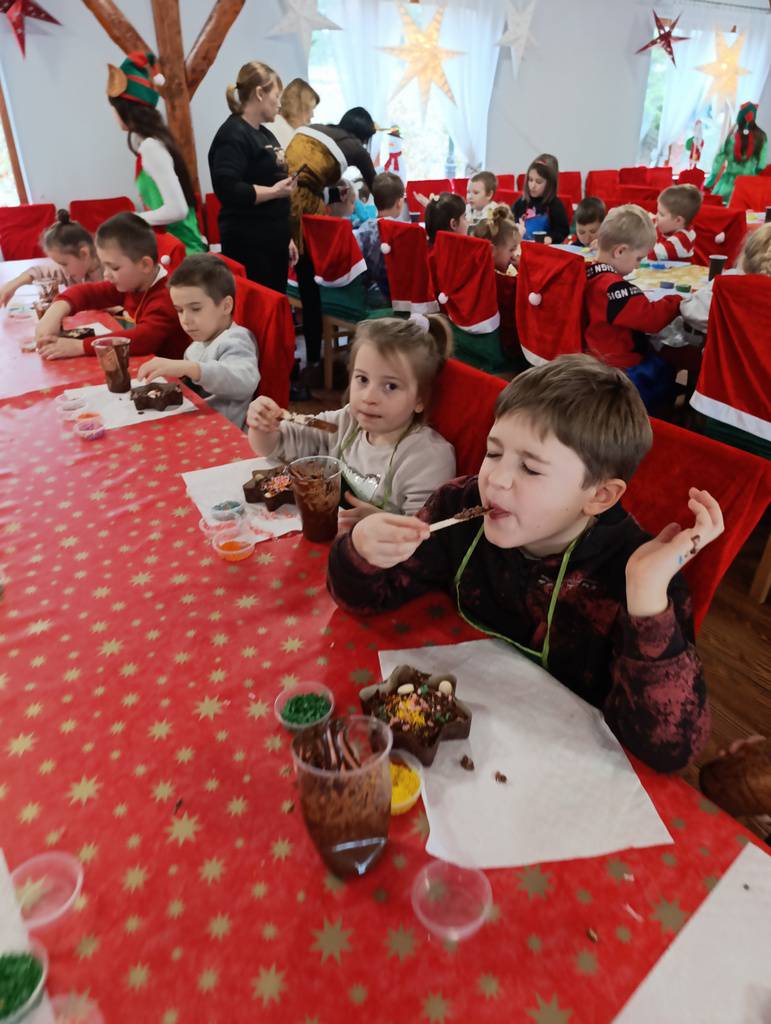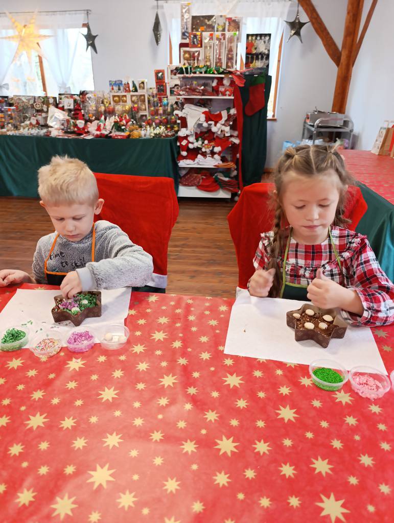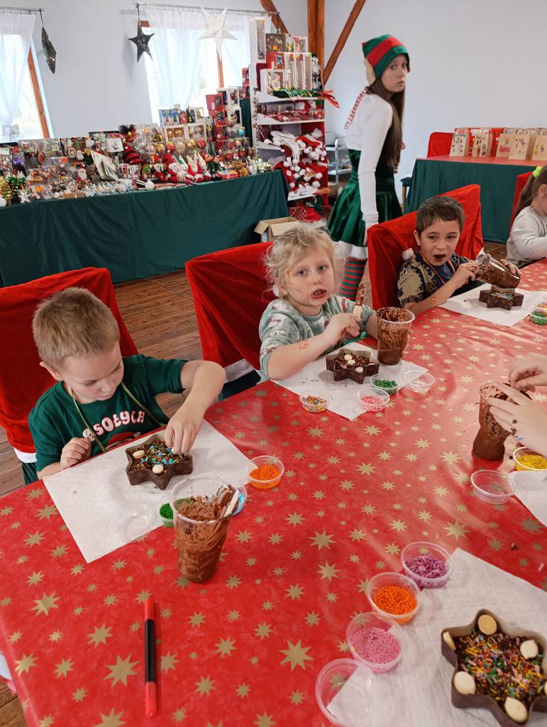W trakcie warsztatów dzieci ozdabiały drewniane bombki oraz stworzyły czekoladowe przysmaki. Każdy mógł ozdobić tak, jak podpowiadała mu wyobraźnia.