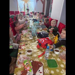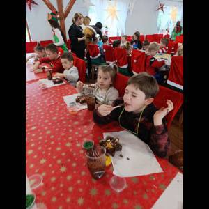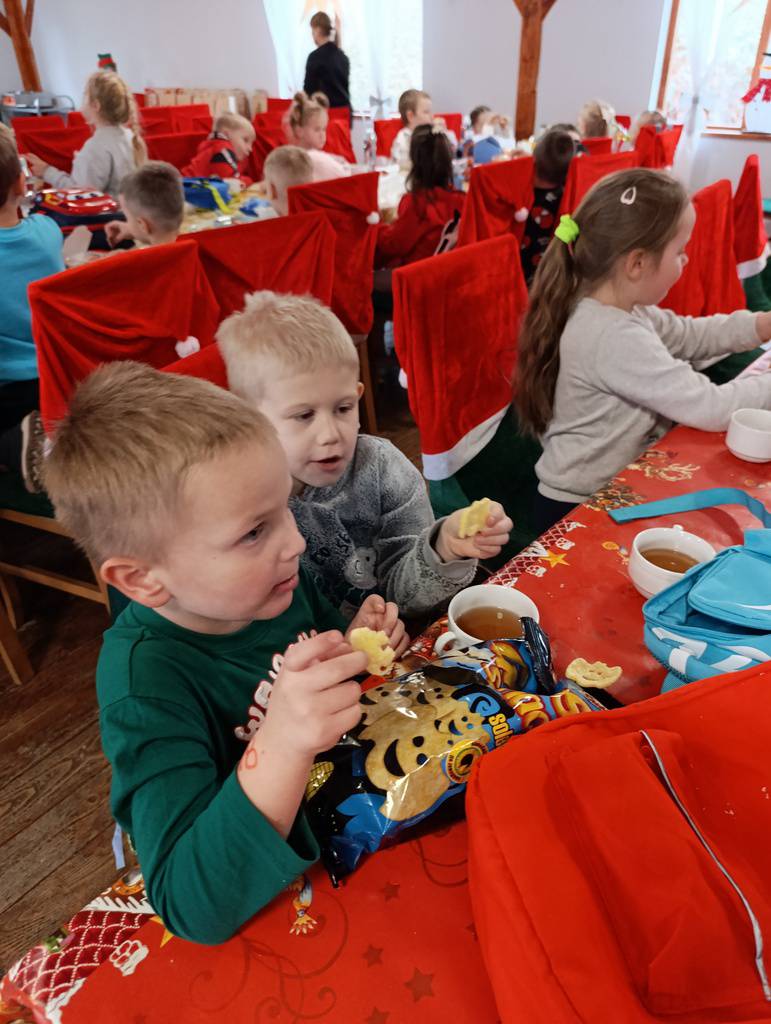 W przerwie dzieci popijały świąteczną herbatkę, a w tle słychać było świąteczne przeboje!