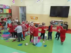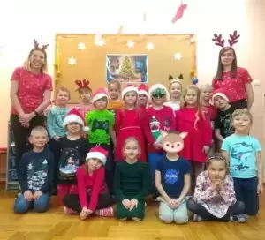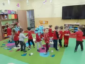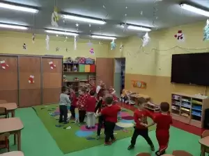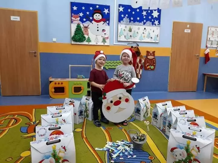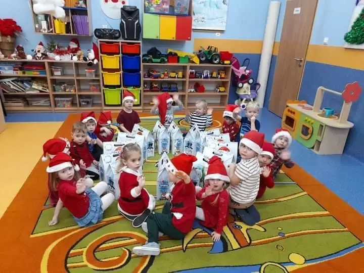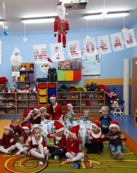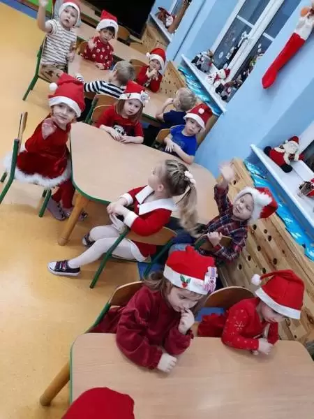 Od samego rana w placówce panowała radość i poruszenie. Przedszkolaki z wielką niecierpliwością oczekiwały przyjścia niezwykłego gościa. Cały czas nasłuchiwały dzwonków. Aby podkreślić wyjątkowy charakter tego wydarzenia wszystkie dzieci były odświętnie ubrane w czerwone mikołajowe czapeczki.