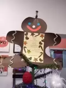 Następnie, przy dźwiękach świątecznej muzyki, dzieci zabrały się do pracy, pięknie ozdabiając ciasteczka, a ograniczała je jedynie wyobraźnia... Na zakończenie ,,Kotki'' podziękowały za świetne zajęcia oraz wspaniale spędzony czas i wręczyły Pani Agnieszce i Panu Mariuszowi śliczną świąteczna bombkę, a także pierniczka, tylko trochę większych rozmiarów i nie tak pysznego, bo wykonanego z papieru :).