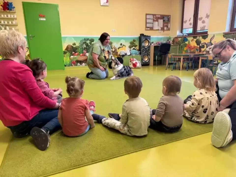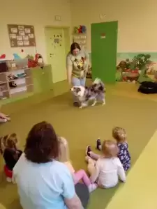 28 marca dzieci ze Żłobka Publicznego „Średzkie Skarby” w Środzie Śląskiej odwiedził wyjątkowy gość – Salitka, piesek rasy Border collie wraz ze swoją właścicielką, Martyną Trzmiel.