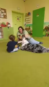 Pani Martyna od wielu lat specjalizuje się m.in. w zajęciach dogoterapii. Wszyscy wiemy, że obecność naszych czworonożnych przyjaciół wspiera zarówno nasze zdrowie psychiczne jak i fizyczne, redukuje negatywne emocje, uwalnia także szereg pozytywnych uczuć.
