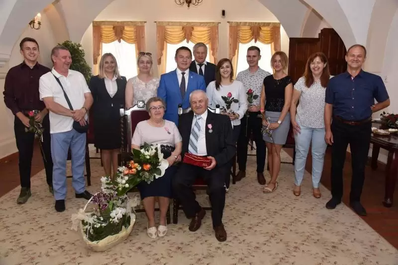 Uroczystość z udziałem rodziny Jubilatów oraz burmistrza Środy Śląskiej Adama Rucińskiego i przewodniczącego Rady Miejskiej w Środzie Śląskiej Jerzego Finka odbyła się 24 lipca.