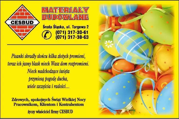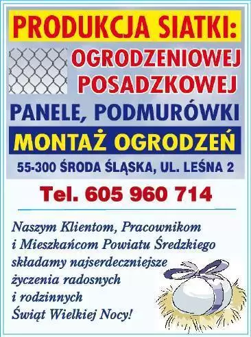 Serdeczne życzenia z okazji Świąt Wielkiej Nocy składają Państwu firmy i organizacje działające na terenie gminy Środa Śląska i powiatu średzkiego.