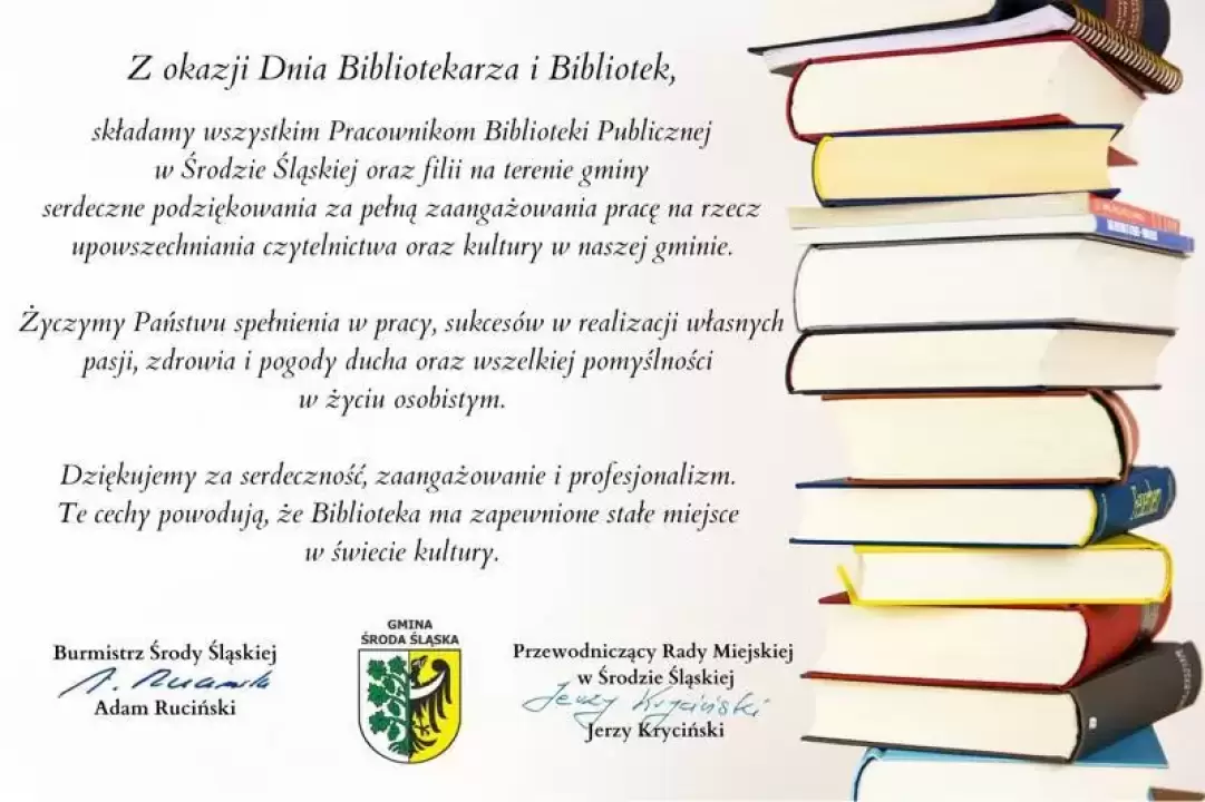 Życzenia z okazji Dnia Bibliotekarza i Bibliotek