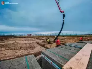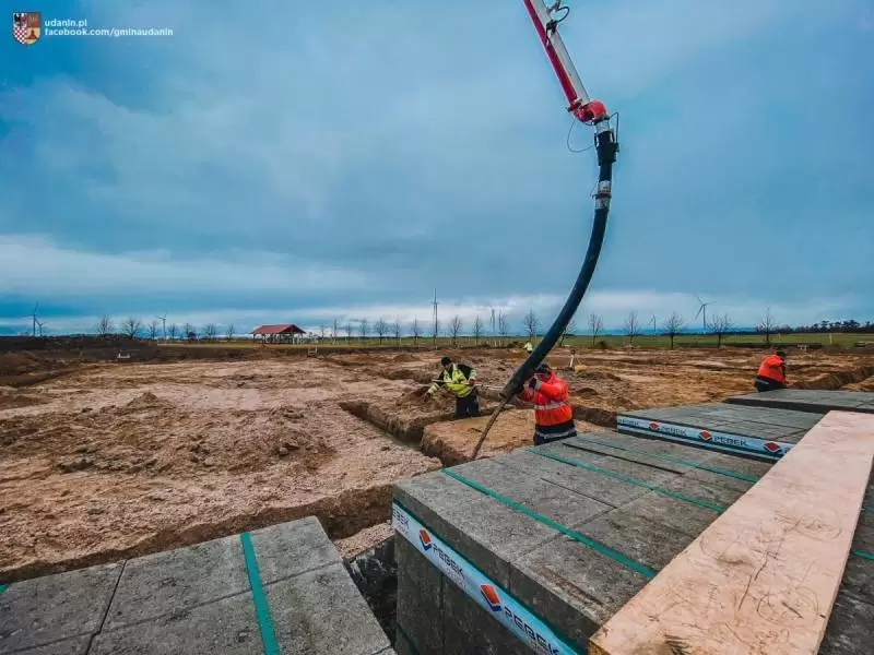 Łagodna zima sprzyja realizacji inwestycji w Piekarach. Na budowie Centrum Usług Społeczno-Zdrowotnych pojawiły się już ławy fundamentowe.