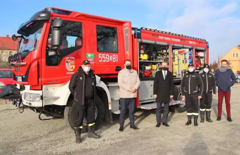 Oprócz spraw bieżących dotyczących gminy, spotkanie było również doskonałą okazją do zaprezentowania nowego samochodu OSP KSRG Udanin i podziękowania posłowi za wsparcie przy realizacji zadania, w ramach którego doposażono jednostkę.