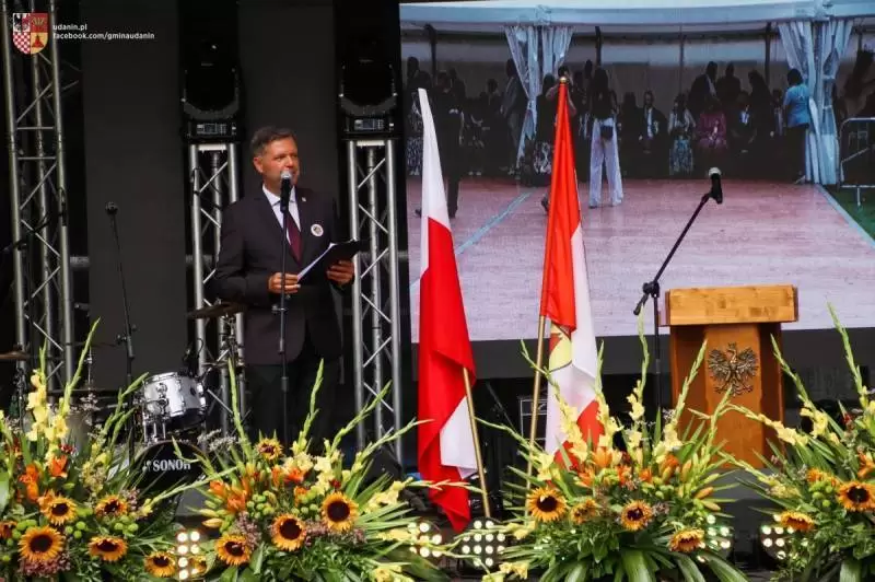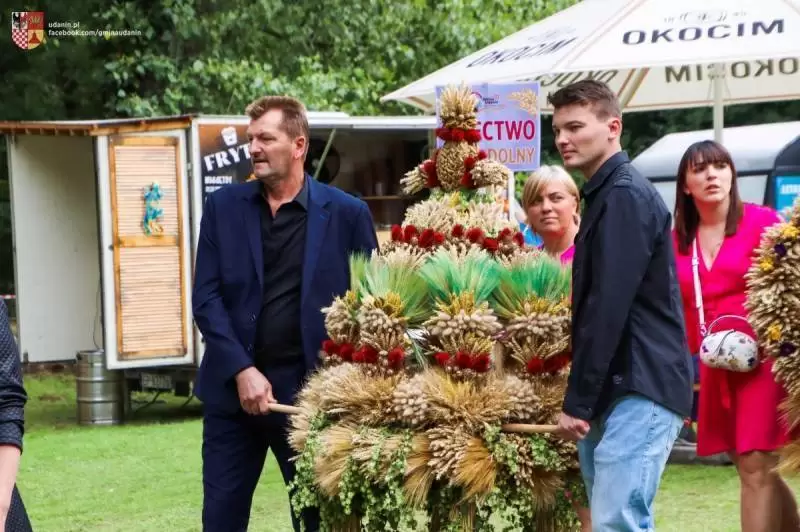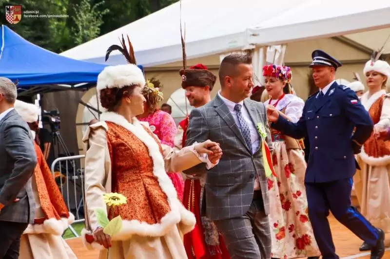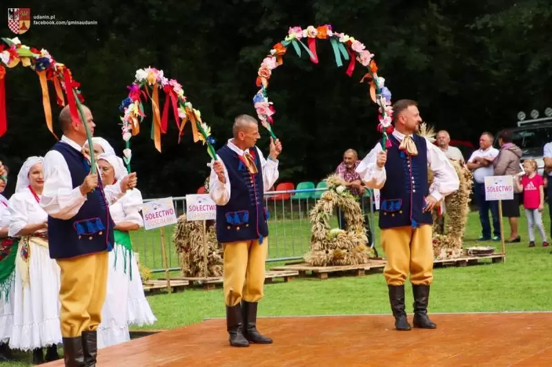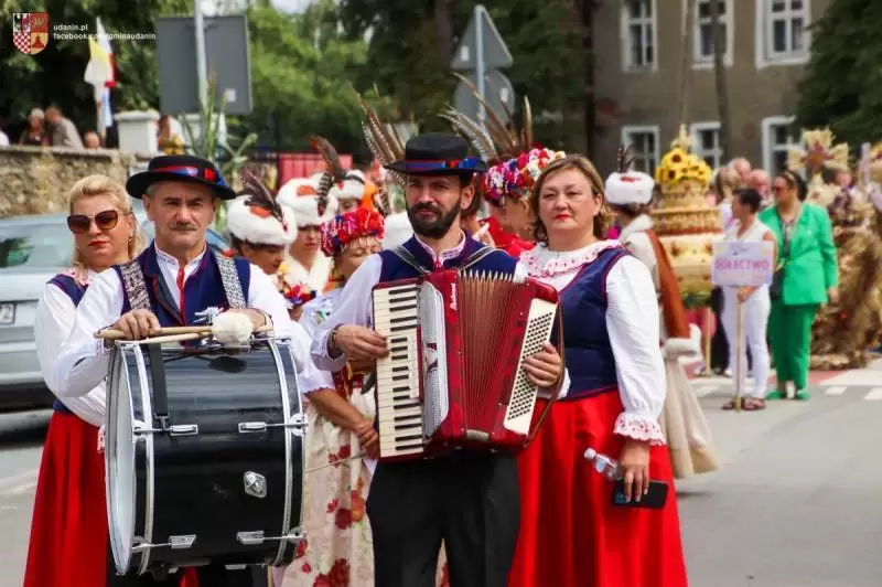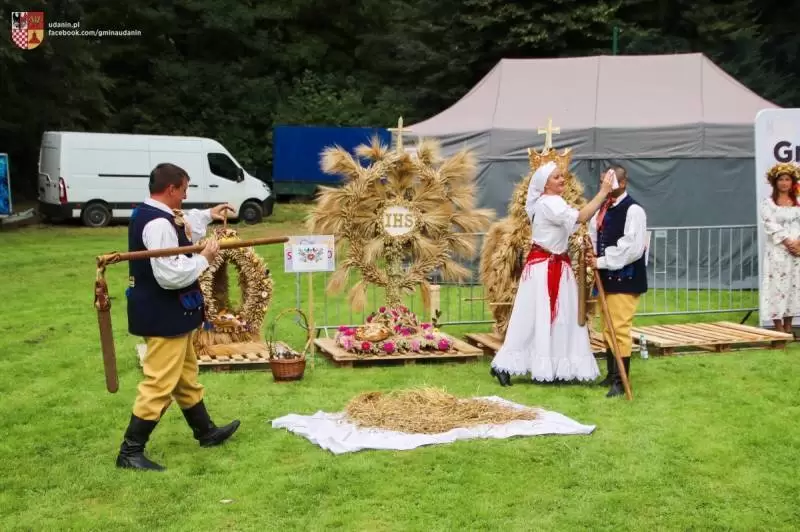 Wójt, Przewodniczący RG Udanin wraz z radnymi, zaproszeni goście, delegacje wieńcowe oraz mieszkańcy gminy zebrali się o 13:00 w kościele w Damianowie by podziękować za tegoroczne plony, mszy przewodniczył Ks. Dziekan Marek Babuśka, a koncelebrował ks. Proboszcz Rafał Chudy. Po dziękczynieniu barwny korowód przeszedł na boisko sportowe, by rozpocząć część oficjalną uroczystości.
