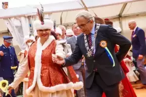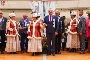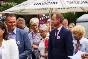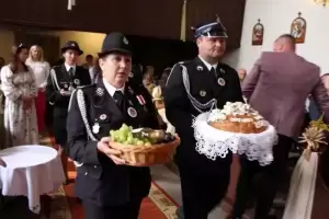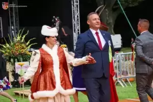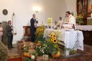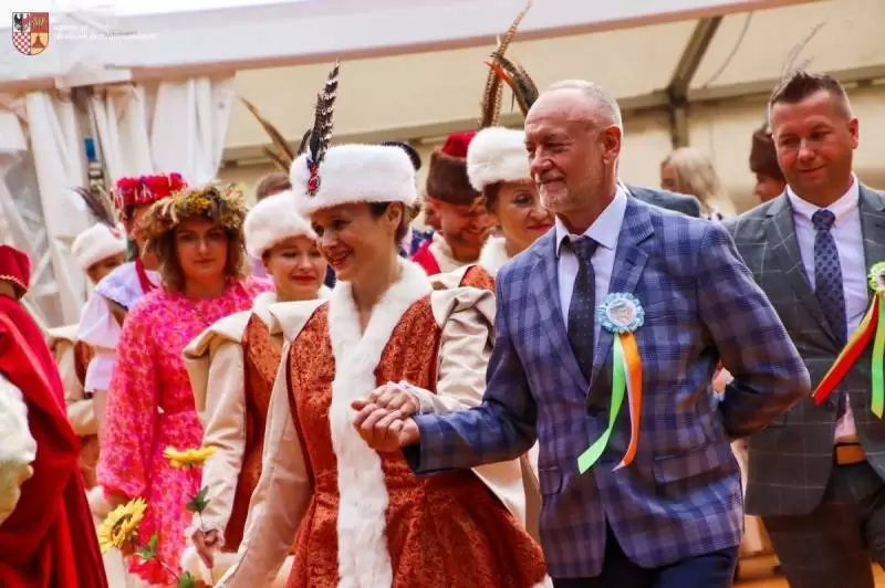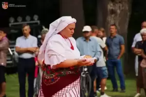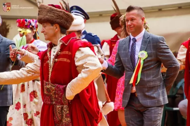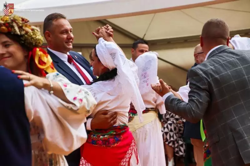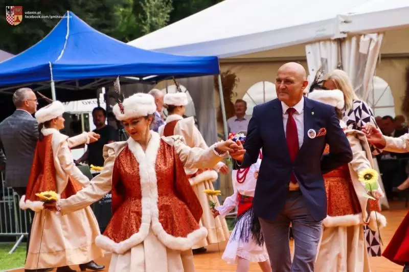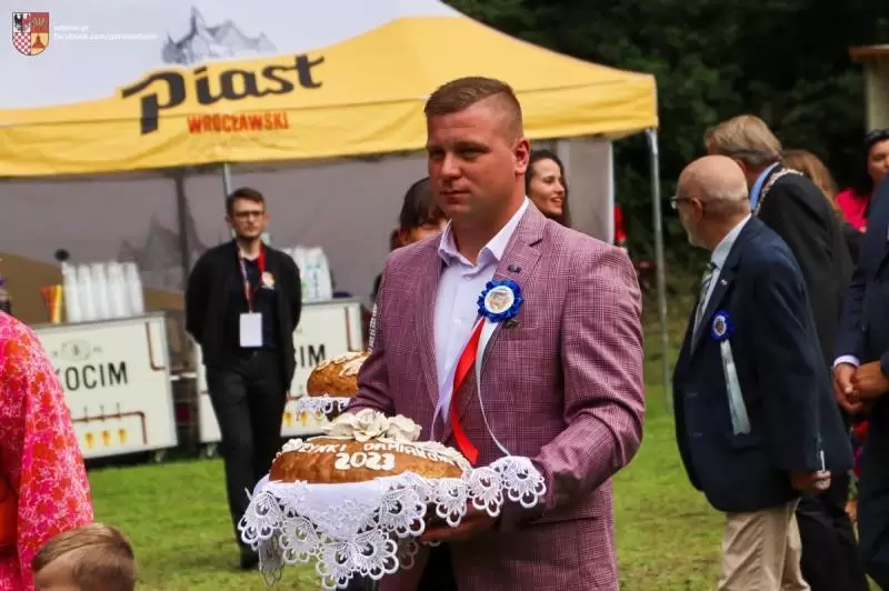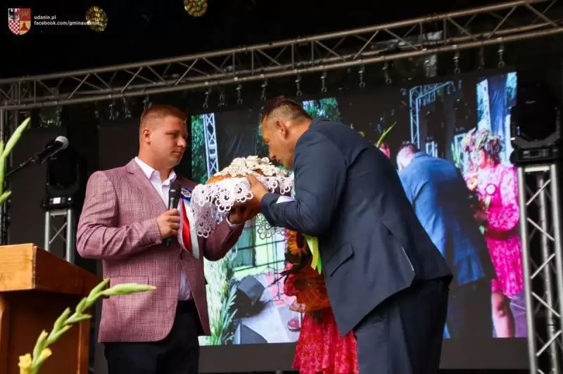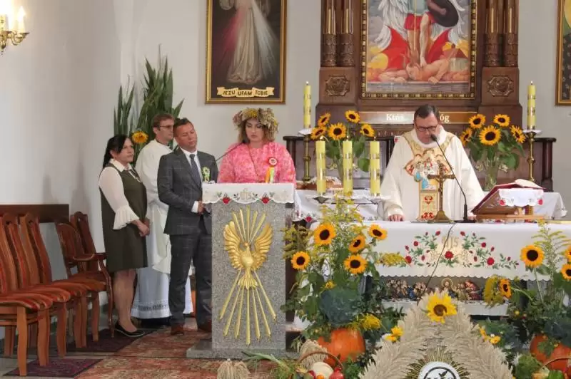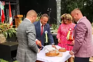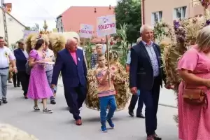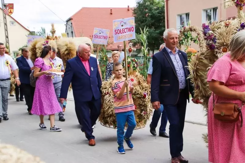 Następnie Wójt, Starostowie Dożynek oraz kilku wybranych gości zainaugurowali dożynki gminne polonezem odtańczonym wspólnie z ZPiT „Ziemia Legnicka”. Również ten sam Zespół poprowadził kolejno obrzęd dożynkowy, a także wystąpił z szerokim programem tanecznym. Podczas części oficjalnej odbyło się symboliczne krojenie chleba i rozdzielenie go wśród mieszkańców.