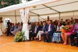 Konferansjer przywitał zaproszonych gości: m.in. Beatę Kempę - Posłankę do Parlamentu Europejskiego, Pawła Hreniaka – Posła na Sejm RP, Jacka Świata – Posła na Sejm RP, Andrzeja Jarocha – Przewodniczącego Sejmiku Województwa Dolnośląskiego, Krzysztofa Maja – Członka Zarządu Województwa Dolnośląskiego, Marka Kamińskiego – Dolnośląskiego Komendanta Wojewódzkiego PSP, Marka Wawrejko – Komendanta Powiatowego PSP w Środzie Śląskiej, Marcina Wodzińskiego -Zastępcę Komendanta Powiatowego Policji w Środzie Śląskiej, Tadeusza Łozowskiego – Dyrektora Regionalnej Dyrekcji Lasów Państwowych we Wrocławiu, Romana Bereźnickiego – Nadleśniczego Nadleśnictwa Świdnica, Łukasza Kasztelowicza – Prezesa Zarządu WFOŚiGW, Tomasza Krzeszowca – Dyrektora KOWR OT Wrocław, Krzysztofa Szałankiewicza – Starostę Średzkiego wraz z radnymi Rady Powiatu, Sebastiana Burdzego – Wicestarostę Średzkiego, Grzegorza Pierzchalskiego – Członka Zarządu Powiatu Średzkiego, Artura Boguckiego – Przewodniczącego Rady Powiatu Średzkiego, Zbigniewa Suchytę – Burmistrza Strzegomia, Michała Jarosza – Burmistrza Sobótki, Stanisława Lenia – Wójta Gminy Marcinowice, Janinę Gawlik – Wójta Gminy Kostomłoty, Grzegorza Grzegorzewicza – Burmistrza Jaworzyny Śląskiej, Annę Wojtasińską-Żygadło – Dyrektora Powiatowej Stacji Sanitarno-Epidemiologicznej w Środzie Śląskiej, Halinę Semegen – Dyrektor PUP w Środzie Śląskiej oraz Mariusza Jęśkowiaka – Kierownika Oddziału Powiatowego KRUS w Środzie Śląskiej.
