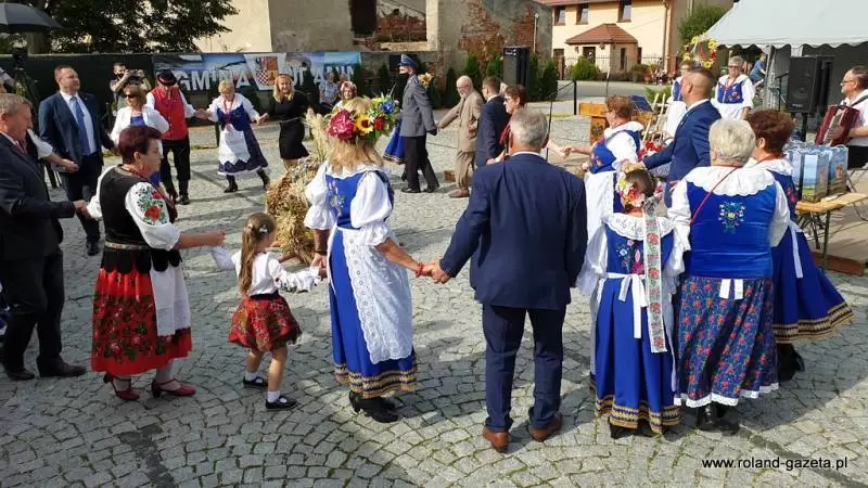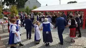 Jak na Święto Plonów przystało nie mogło się obyć bez obrzędu dożynkowego przygotowanego przez zespół ludowy „Cicha Woda” oraz obtańczenia wieńca.