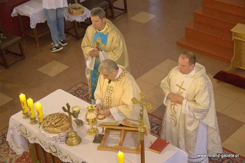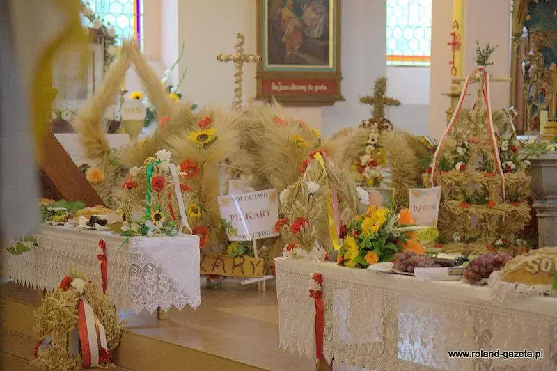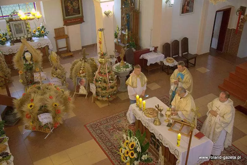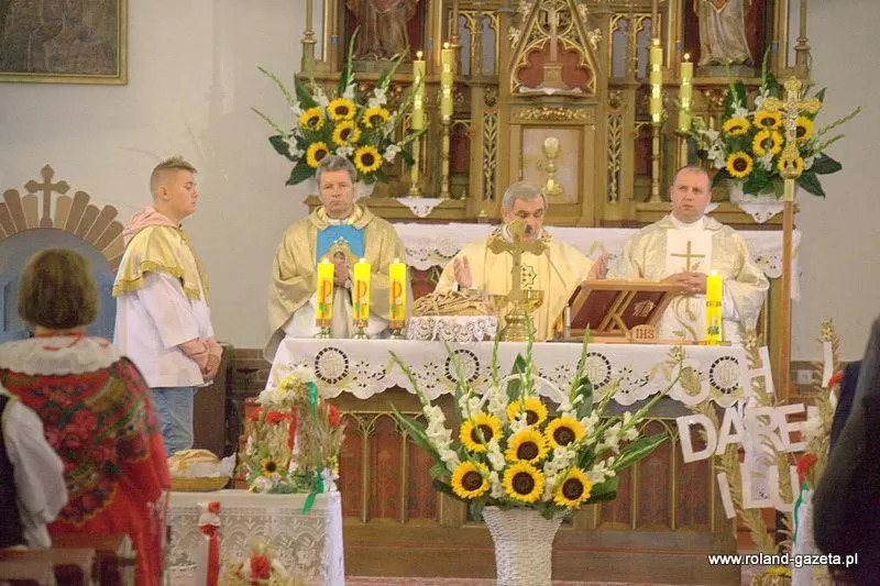 Uroczystość rozpoczęła się w miejscowym kościele p.w. Matki Bożej Anielskiej, gdzie w podziękowaniu za tegoroczne plony ks. prałat Edward Szajda modlił się w intencji rolników. W mszy brali udział również: proboszcz parafii p.w. św. Jana Chrzciciela w Piekarach ks. Marek Jodko oraz proboszcz parafii p.w. Podwyższenia Krzyża Świętego w Konarach ks. Andrzej Ćwik.