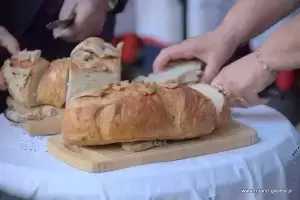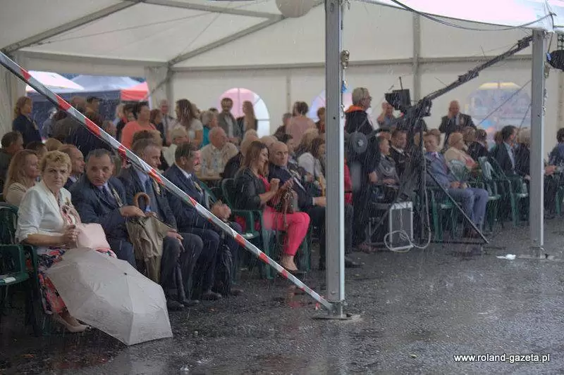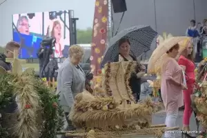 Pomimo ulewy barwny korowód dożynkowy przeszedł na boisko sportowe, by tam obejrzeć obrzęd dożynkowy poprowadzony tradycyjnie przez zespół ludowy „Cicha Woda” z Udanina. W dalszej części uroczystości, zgodnie ze zwyczajem starosta i starościna dożynek Anna i Jan Dorobek z Łagiewnik Średzkich przekazali chleb wypiekany ze zbóż zebranych w czasie tegorocznych żniw, który później wspólnie z wójtem gminy Udanin Teresą Olkiewicz, przewodniczącym Rady Gminy Udanin Januszem Strzeleckim, sekretarzem gminy Piotrem Łabędzkim, podzielono wśród gości.