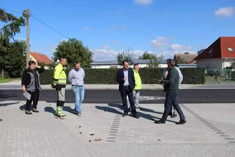 W odbiorze zadania pn. "Przebudowa i modernizacja drogi powiatowej 2091D w miejscowości Udanin - Etap II od km 0+000 do 0+554" uczestniczyli: wicestarosta Sebastian Burdzy, członek zarządu Grzegorz Pierzchalski, pracownicy starostwa, wójt Gminy Udanin Wojciech Płaziuk wraz z pracownikami UG oraz przedstawiciele firmy COM-D