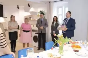Wójt złożył najserdeczniejsze życzenia i przekazał na ręce seniorów kosze upominkowe zaopatrzone w naturalne produkty z Lokalnej Grupy Działania Szlakiem Granitu.