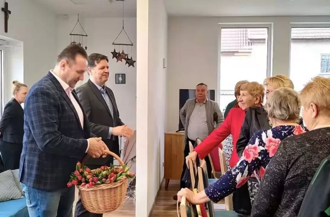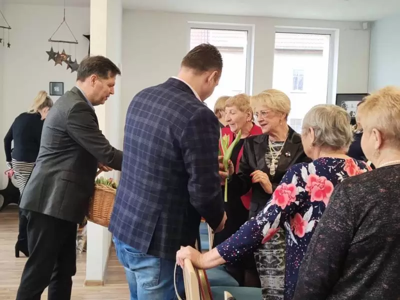 Z okazji Dnia Kobiet, wójt Gminy Udanin Wojciech Płaziuk oraz sekretarz Andrzej Bielski, odwiedzili wczoraj Klub Seniora w Konarach.