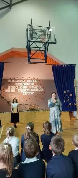 Samorząd Uczniowski, klasy V i VI oraz pierwszaki przygotowali uroczysty apel. W centrum scenografii pojawił się napis mówiący, że „Głównym celem edukacji jest nie nauka, lecz rozbudzenie ducha”. Były także piosenki, humorystyczne scenki z życia szkoły i nauczycieli oraz miłe życzenia.