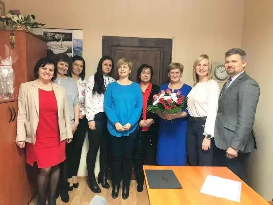Z tej okazji, na ręce kierownika GOPS Lidii Hołodniuk, sekretarz gminy Piotr Łabędzki oraz skarbnik Karolina Ożóg, w imieniu wójta gminy Udanin Wojciecha Płaziuka przekazali życzenia oraz bukiet kwiatów.