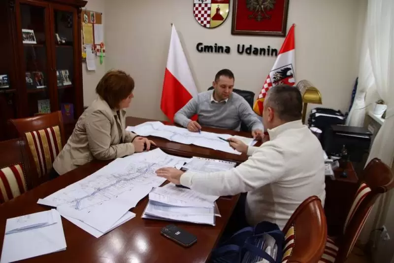 19 lutego br. w Urzędzie Gminy odbyło się spotkanie Wójta Wojciecha Płaziuka z projektantem Pawłem Draznym, które dotyczyło omówienia przygotowania dokumentacji technicznej pod potrzeby przebudowy dróg gminnych:
