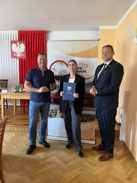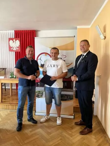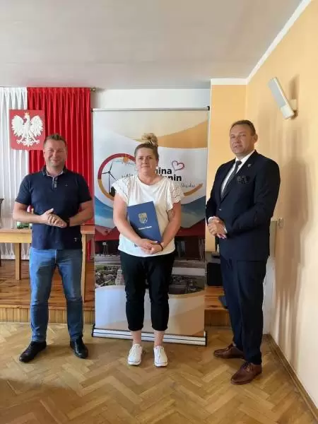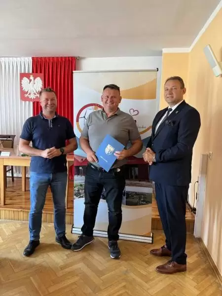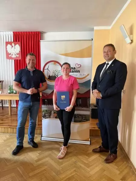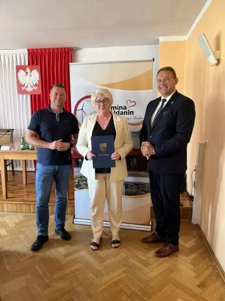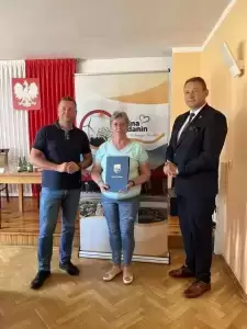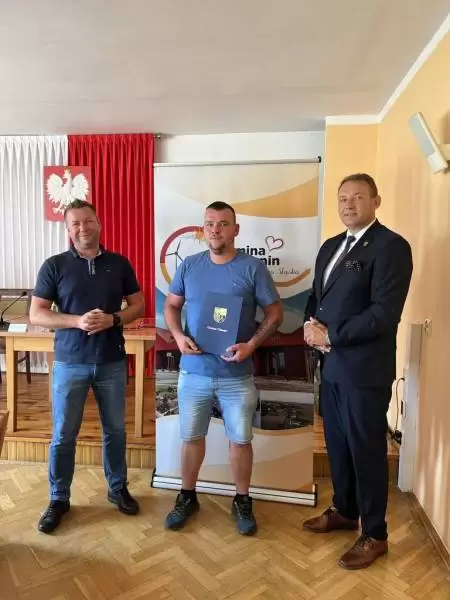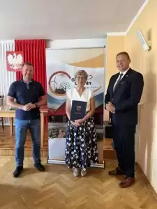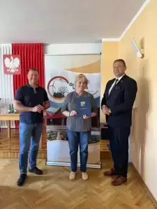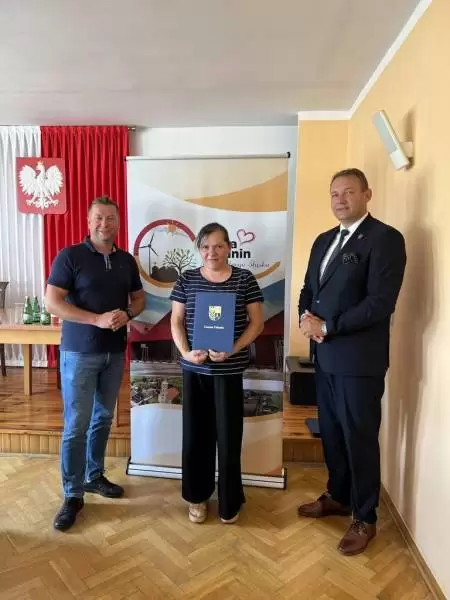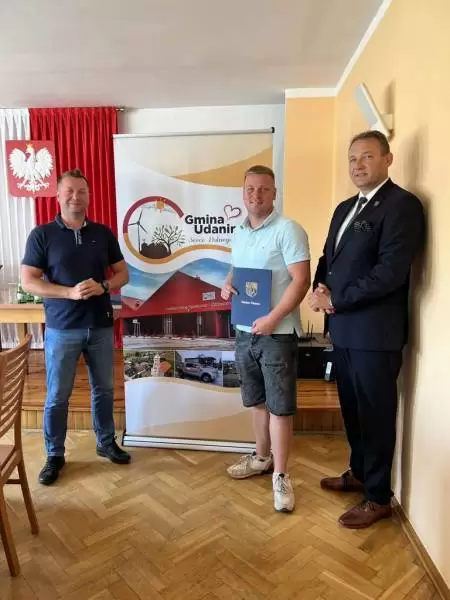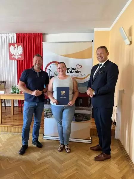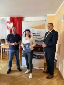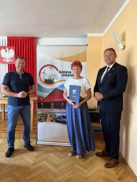 Wójt Gminy Udanin Wojciech Płaziuk wraz z Przewodniczącym Rady Gminy Udanin Januszem Strzeleckim przekazali sołtysom gratulacje oraz pamiątkowe gminne pinsy z okazji wyboru na kadencję 2024-2029.