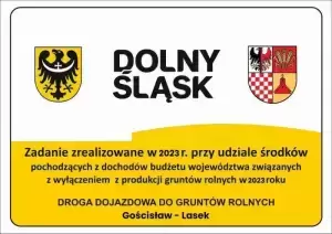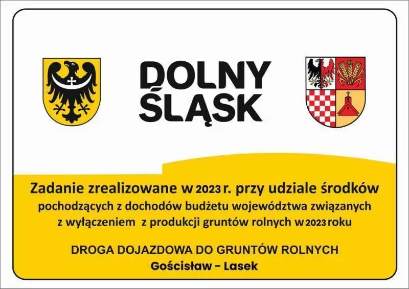 Na realizację zadania Gmina Udanin otrzymała dofinansowanie z budżetu Województwa Dolnośląskiego w formie dotacji celowej jednostkom samorządu terytorialnego na finansowanie ochrony, rekultywacji i poprawy jakości gruntów rolnych zadanie pn.: "Gościsław – Lasek droga dojazdowa do gruntów rolnych" w wysokości 1.080.000,00 zł.