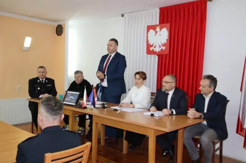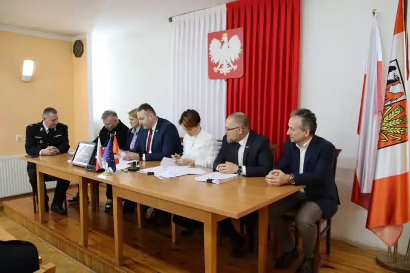 Wójt Gminy Udanin Wojciech Płaziuk, Zastępca Skarbnika Jowita Olejarz wraz z Pełnomocnikiem spółki TURPIS sp. z o.o., sp.k Markiem Czajdą, podpisali umowy przedmiotem których jest budowa i przebudowa remiz OSP.