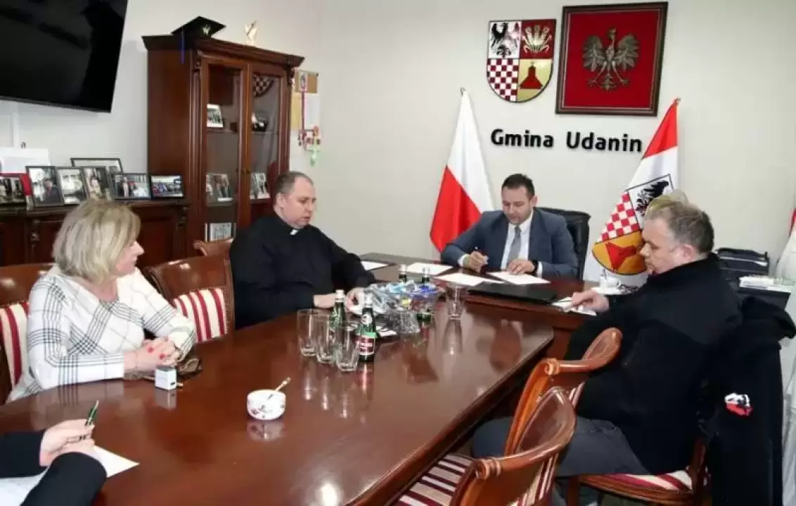 29 lutego br. Wójt Gminy Udanin Wojciech Płaziuk, przy kontrasygnacie Skarbnika Gminy Udanin Bożeny Trawińskiej, w obecności księży proboszczów - Marka Jodko oraz Jacka Stala, podpisał umowy dotacji na zadania pn.: