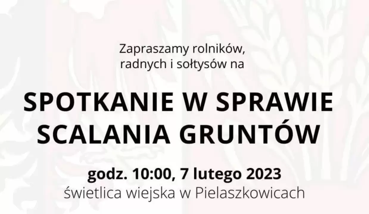 Spotkanie dla rolników, radnych i sołtysów ws. scalania gruntów odbędzie się 7 lutego br. w świetlicy wiejskiej w Pielaszkowicach.