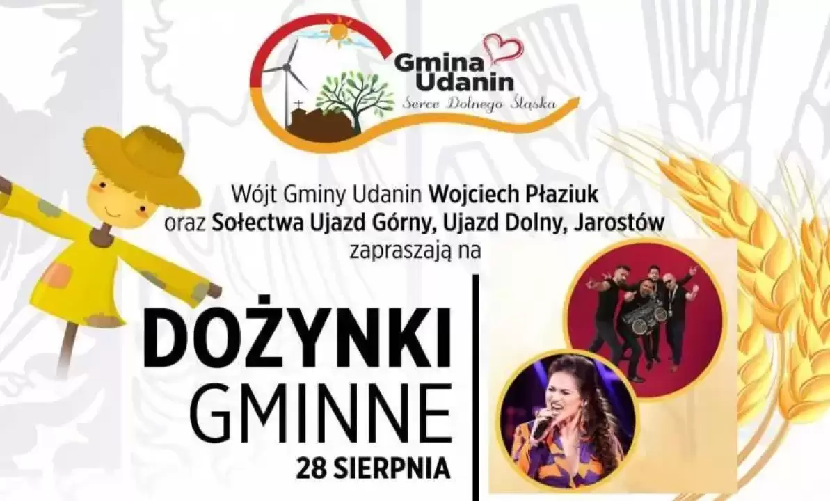 28 sierpnia Dożynki Gminy Udanin zagoszczą w Ujeździe Górnym. Organizatorami i gospodarzami tegorocznych uroczystości są wójt Gminy Udanin Wojciech Płaziuk oraz Sołectwa Ujazd Górny, Ujazd Dolny i Jarostów.