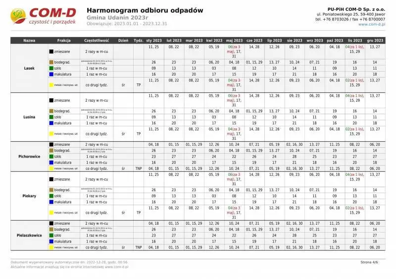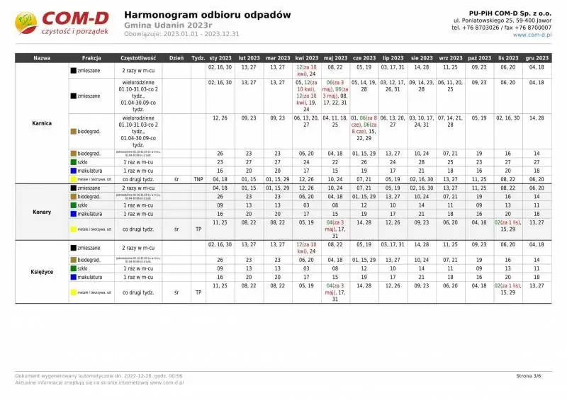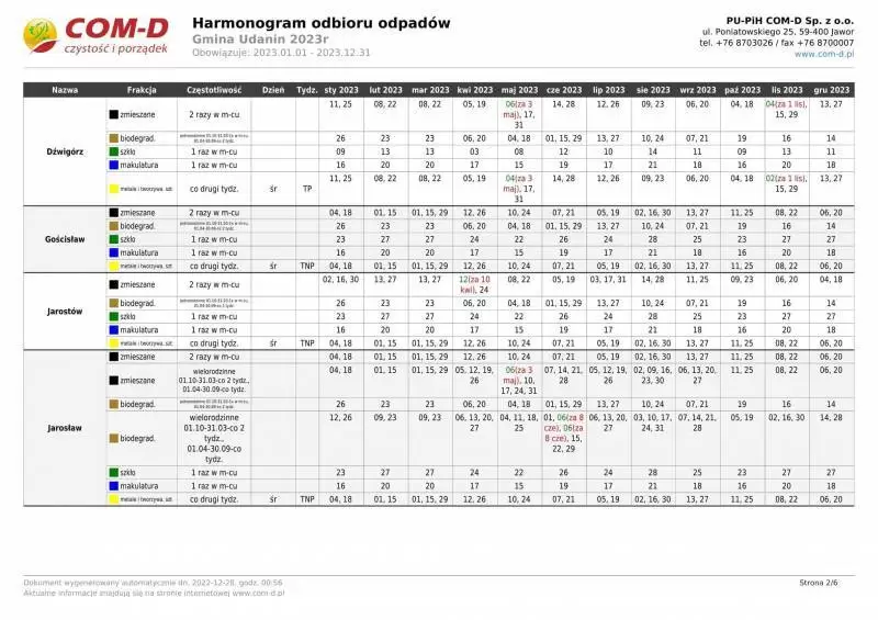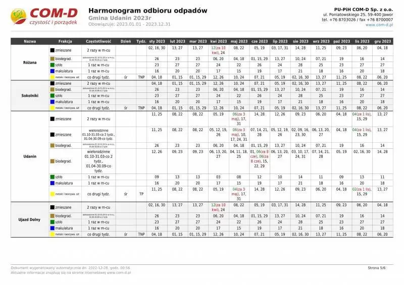 Cały harmonogram dostępny jest również na stronie internetowej: http://www.com-d.pl/harmonogram-zbiorczy/udanin-2023r-gmina