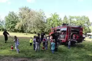Na uczestników czekał poczęstunek, kiełbaski z grilla, ognisko oraz mnóstwo atrakcji przygotowanych przez myśliwych oraz strażaków OSP. Dzieci chętnie brały udział w grach i zabawach m.in. strzelaniu do celu, dzięki życzliwości strażaków został zorganizowany pokaz sprzętu strażackiego.