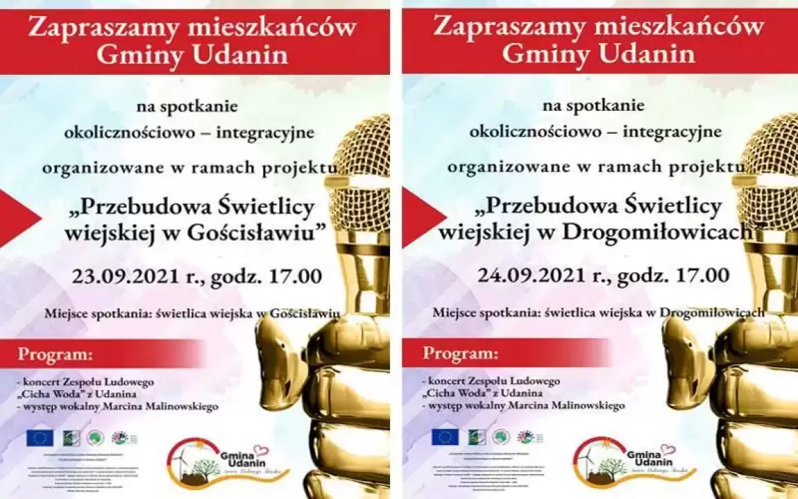 Gmina Udanin zaprasza mieszkańców na spotkania okolicznościowo-integracyjne w Gościsławiu i Drogomiłowicach.