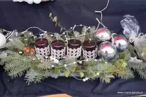 Na pierwszym świątecznym jarmarku w Udaninie wystawiło się kilkunastu wystawców. Były stoiska ze świątecznymi dekoracjami, rękodziełem oraz pysznymi produktami lokalnymi m.in. miodami, serami, przetworami z jabłek i pigwy, mąkami i herbatami. Nie zabrakło też domowych ciast oraz pierogów. Stowarzyszenie Arkana przygotowało dla wszystkich barszcz z uszkami.