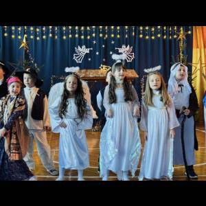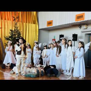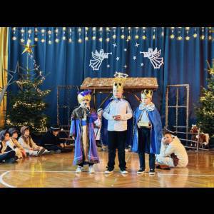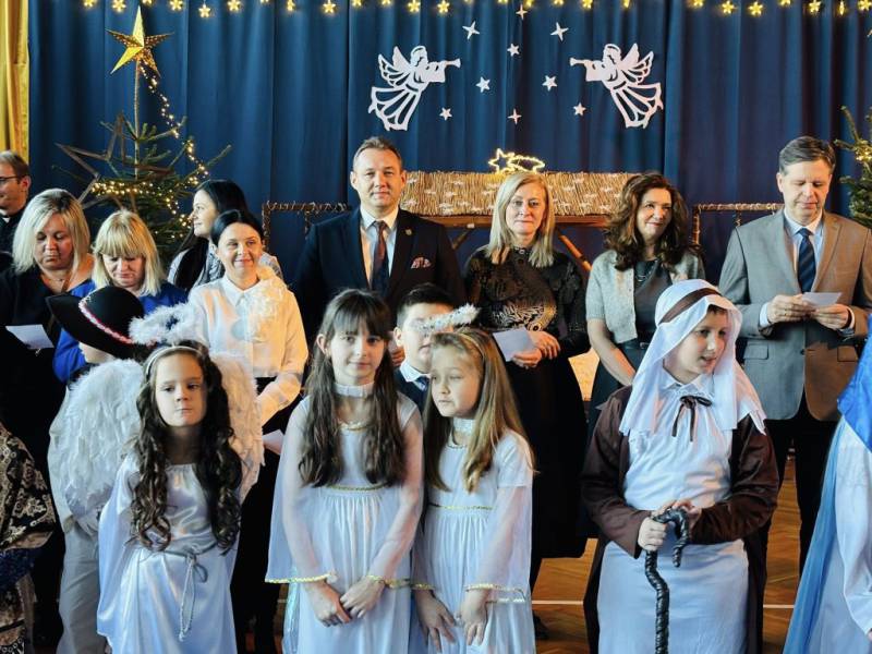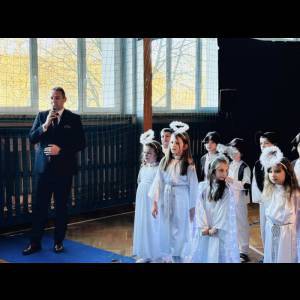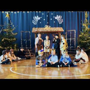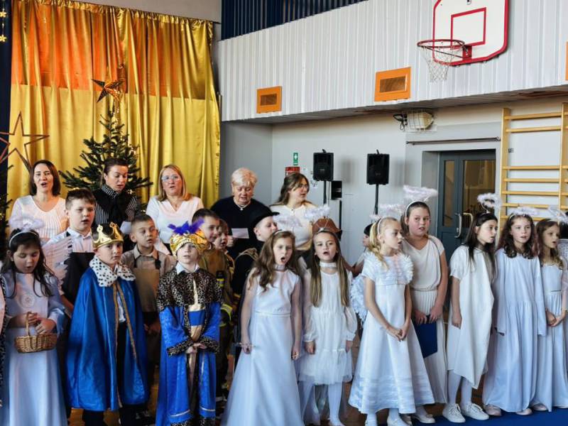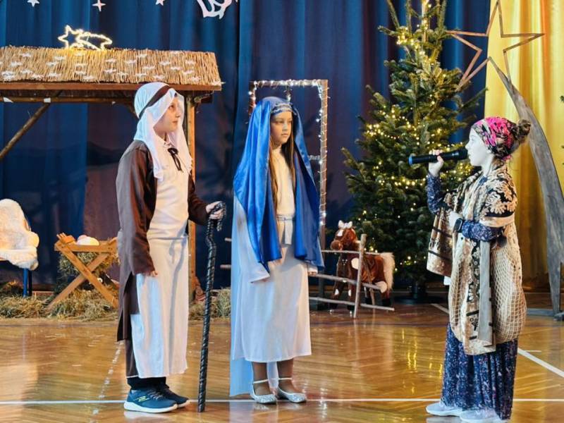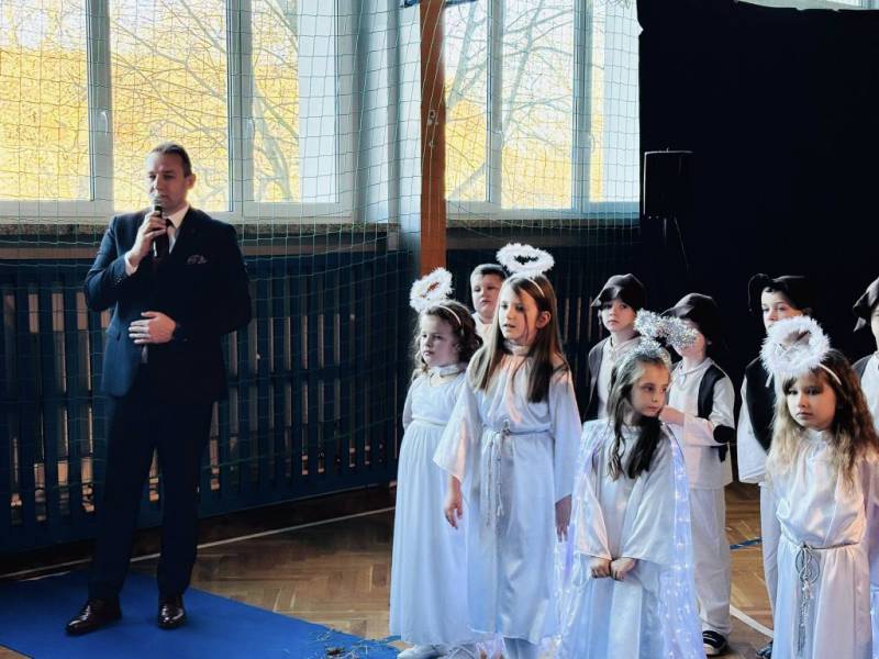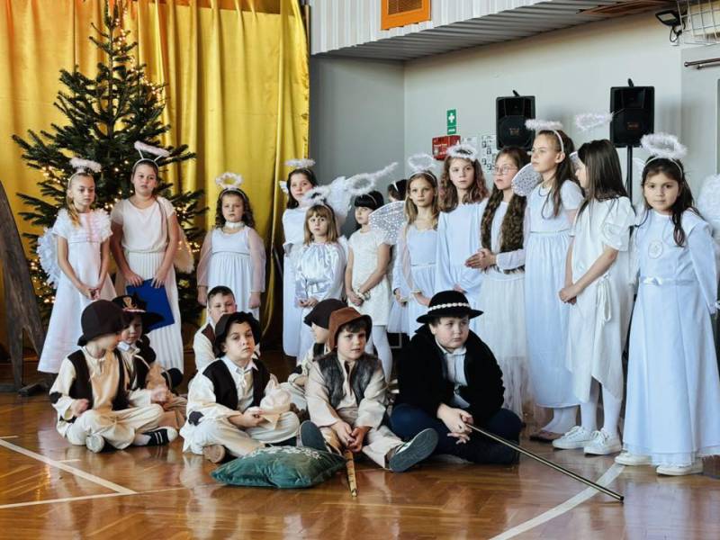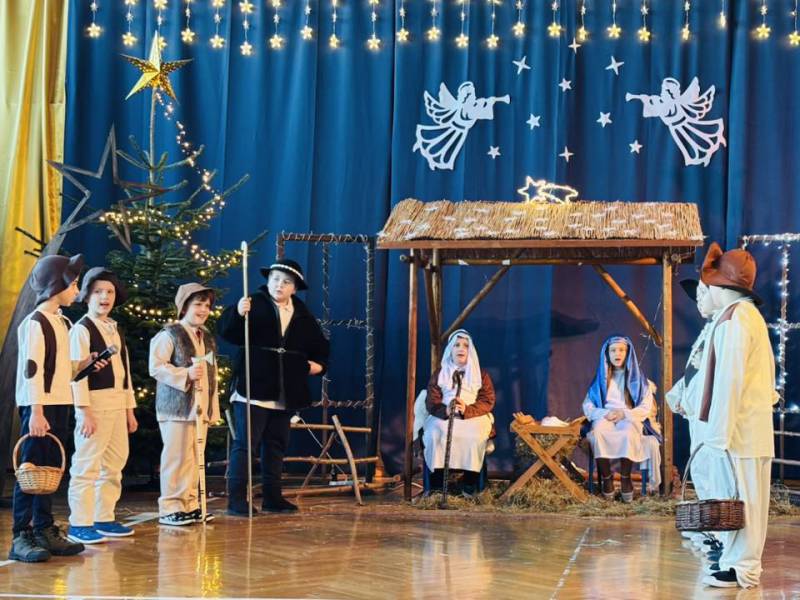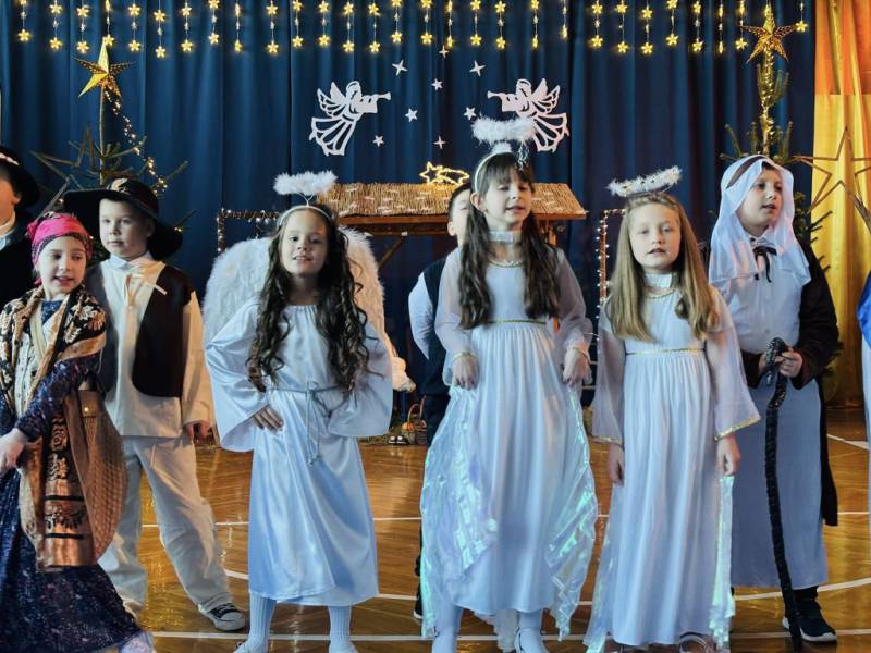 Przepiękne przedstawienie przygotowały dzieci z klas 0–III, które wprowadziły wszystkich w świąteczny nastrój. Mali artyści zachwycili publiczność swoim zaangażowaniem, grą aktorską oraz śpiewem, a całość była pełna ciepła, radości i bożonarodzeniowej magii.