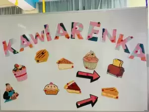 Opiekunowie serdecznie dziękują rodzicom i uczniom, którzy przygotowali kawiarenkę, a byli to: Ala Szczur, Zuzanna Szczepanowska, Maja Młynarczyk, Hania Sobczak, Zosia Róg, Filip Kruk, Maja Wójtowicz, Julia Ogórek, Iza Kowalczyk, Kacper Filip, Kacper Wiącek, Julia Polowy, Ola Bielec, Maja Łesejko, Julia Bator, Zuzia Strzelecka, Marlena Baniecka, Tosia Jurek, Natalia Chomąt, Tomasz Pawleniak, Hania Pichowicz, Wiktor Wierzbicki, Wiktoria Pastruszko, Emilia Bańkowska, Karol Kulpiński, Wiktoria Bergman, Marcin Rutkowski, Marek Zastocki, Nina Burdzińska, Weronika Gawlak.