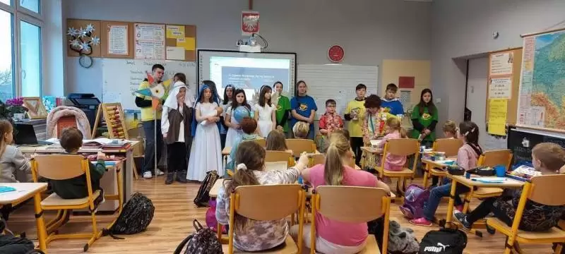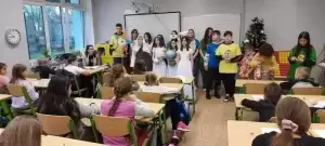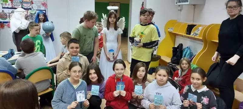 Odwiedzając poszczególne klasy, obwieszczali wszystkim dzieciom fakt Bożego Narodzenia i w piękny sposób opowiadali, jak żyje się rówieśnikom w Oceanii. Przy tej okazji zbierano datki do puszki, które w tym roku przeznaczone są na pomoc dzieciom z Papui-Nowej Gwinei żyjącym w biedzie i niemającym dostępu do nauki.