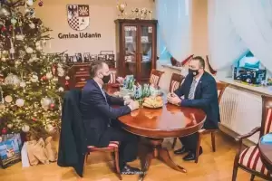 Po odbiorze drogi, wójt gminy Udanin Wojciech Płaziuk oraz dyrektor oddziału terenowego Krajowego Ośrodka Wsparcia Rolnictwa we Wrocławiu Tomasz Krzeszowiec spotkali się, aby porozmawiać o dalszej współpracy między gminą, a KOWR.