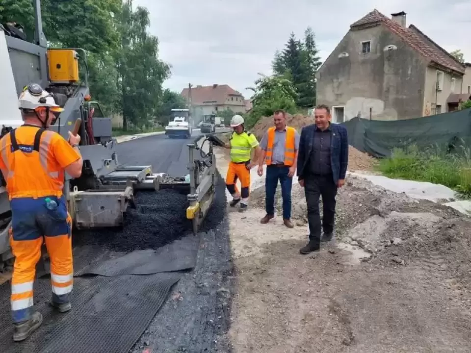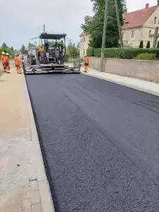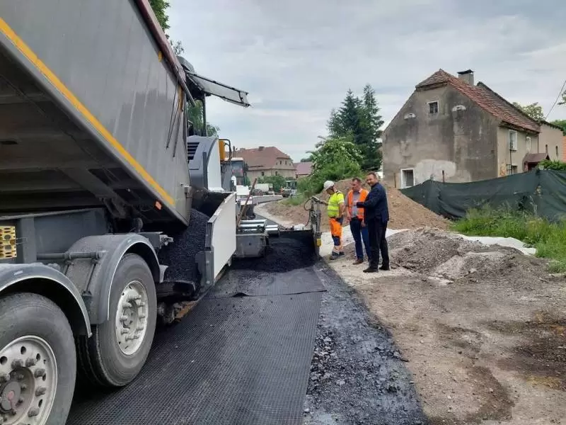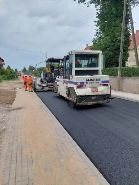 Układana jest pierwsza warstwa masy asfaltowej na drodze w miejscowości Pichorowice. Zadanie realizowane jest z Programu Rządowego Polski Ład oraz z budżetu Gminy Udanin i Powiatu Średzkiego. Wartość inwestycji to ponad 6 mln zł.