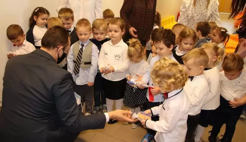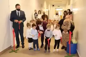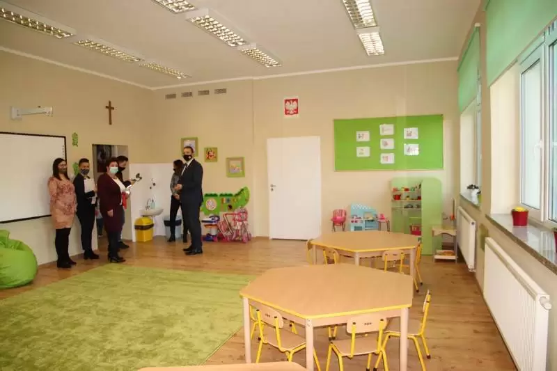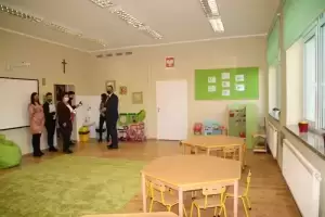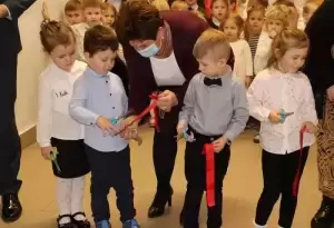 26 stycznia, wójt gminy Udanin Wojciech Płaziuk, wraz z pracownikami odpowiedzialnymi za realizację zadania, dyrektor szkoły Bożena Basa wraz z wychowawczyniami i przedszkolakami, uroczyście otworzyli „Kolorowe Przedszkole”.