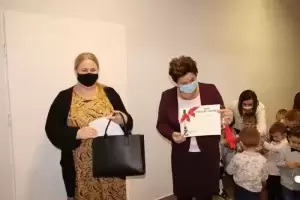 W podziękowaniu za pięknie zaśpiewaną piosenkę, wójt wręczył przedszkolaczkom indywidualne prezenty oraz na ręce wychowawczyni pakiety z okazji otwarcia. Pani Ewa oraz Pani Patrycja otrzymały od Rady Rodziców, którą reprezentuje przewodnicząca Pani Justyna Olkiewicz, bon upominkowy w kwocie 200 zł.