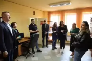Wizytację rozpoczęto od wizyty w Klubie Seniora, gdzie komisja została przywitana pięknym śpiewem, pysznym ciastem i napojami. Podczas spotkania została przedstawiona multimedialna prezentacja działań Sołectwa.
