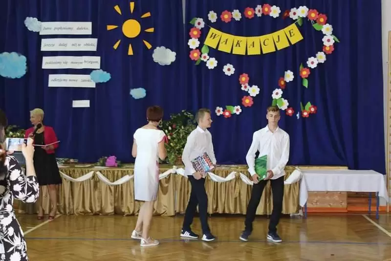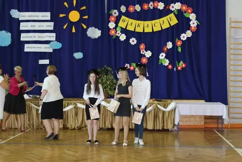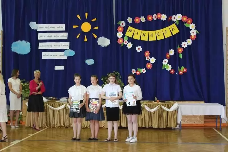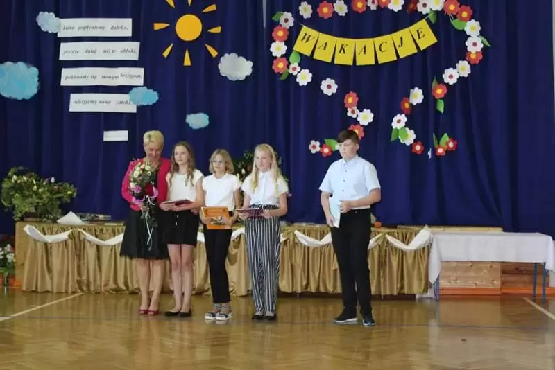 Było to szczególne zakończenie roku, ponieważ po raz pierwszy szkoła podstawowa żegnała uczniów klas ósmych. Rada Rodziców pozyskała od sponsora trzy nagrody rzeczowe, które zostały wręczone uczennicom klasy ósmej za najlepszy wynik egzaminu ósmoklasisty.