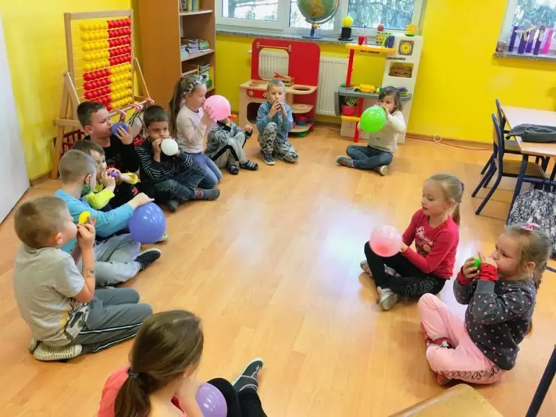 W rytm muzyki i świetnej zabawy przedszkolaki wraz z panią logopedą Emilią Skoneczną ćwiczyły swoje narządy artykulacyjne, wykonywały rozmaite ćwiczenia oddechowe, a także rozwijały koordynację słuchowo-ruchową.