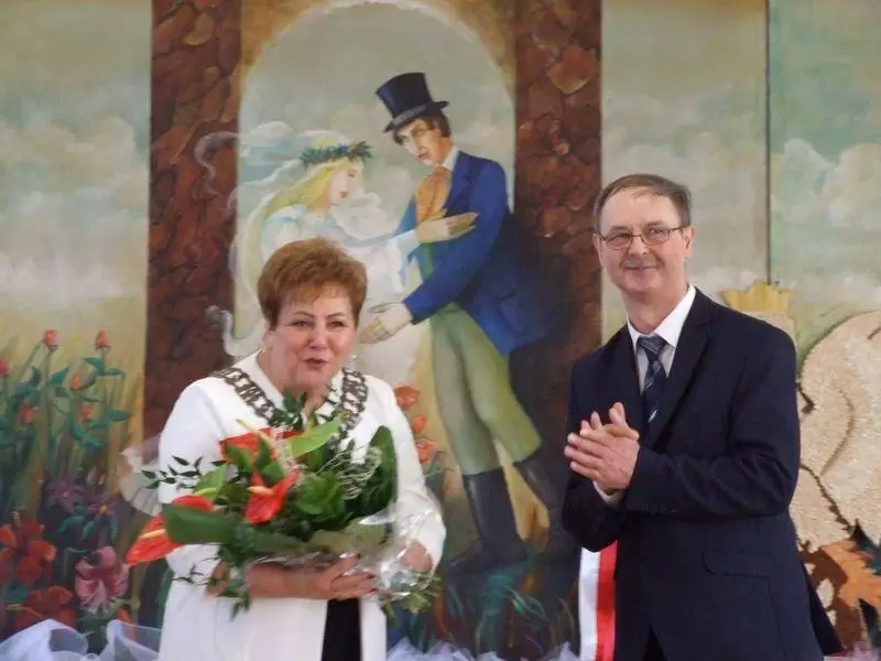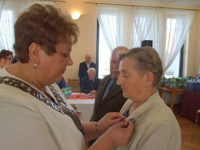 W imieniu władz państwowych medale wręczyła wójt gminy Teresa Olkiewicz, na której wniosek zostały przyznane. Odznaczeni jubilaci to Państwo: Irena i Kazimierz Dudek z Jarosławia, Marianna i Jan Dudek z Ujazdu Górnego, Cecylia i Bronisław Grendysz z Lusiny, Stefania i Czesław Grochalscy z Pichorowic, Elżbieta i Tadeusz Korońscy z Konar, Henryka i Bronisław Lejba z Udanina, Jadwiga i Mieczysław Marcjan z Piekar, Teresa i Franciszek Podsiedlik z Lusiny i Genowefa i Józef Szczepanowscy z Lasku. Jubilaci otrzymali także z rąk pani wójt, przewodniczącego Rady Gminy Janusza Strzeleckiego i zastępcy kierownika USC Jana Podedwornego listy gratulacyjne, bukiety kwiatów, słodkie upominki oraz wiele serdecznych życzeń. Z okazji Jubileuszu pożycia małżeńskiego składamy naszym Jubilatom gratulacje za chlubne przeżycie tak pięknej, wspólnej drogi życia.