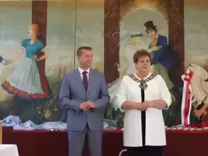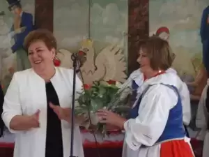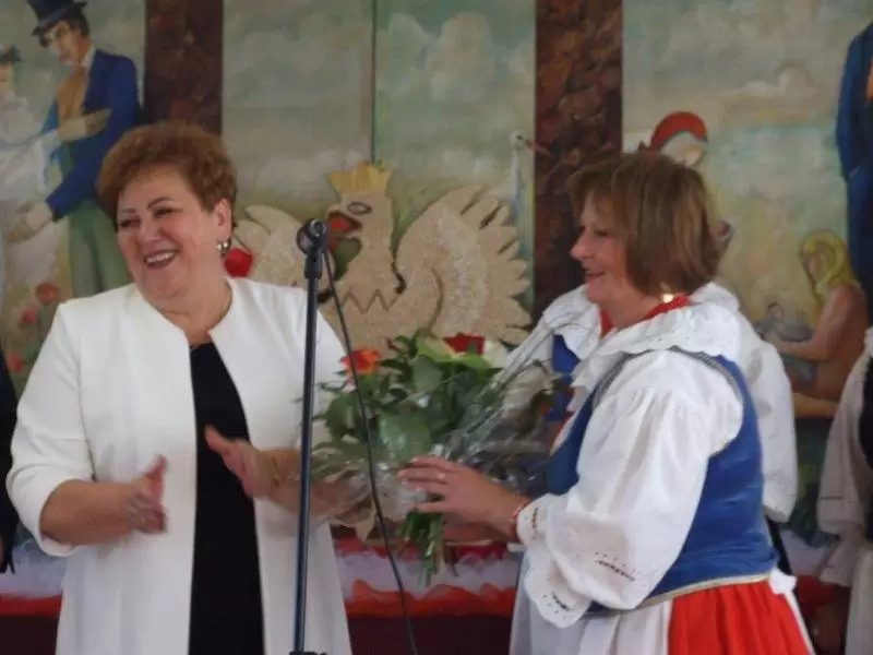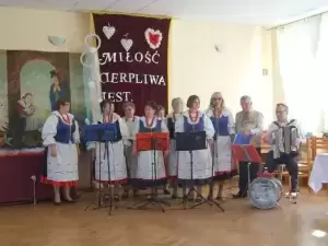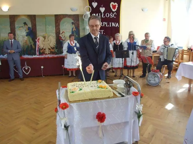 Życzymy długich i pogodnych lat życia w jak najlepszym zdrowiu i zadowoleniu, w niegasnącej miłości otoczenia najbliższych – mówiła pani wójt, składając życzenia. Rangę wydarzenia podkreślił odśpiewany wspólnie z zespołem ludowym Cicha Woda Hymn Narodowy. Był także przygotowany przez organizatorów ogromny tort, tradycyjny toast oraz słodki poczęstunek również dla rodzin, które przybyły z jubilatami. Uroczystość swoim występem uświetnił występ Cichej Wody. Zespół zaśpiewał piosenki o przemijaniu, ale także wesołe ludowe przyśpiewki, które porwały zgromadzonych do tańca.