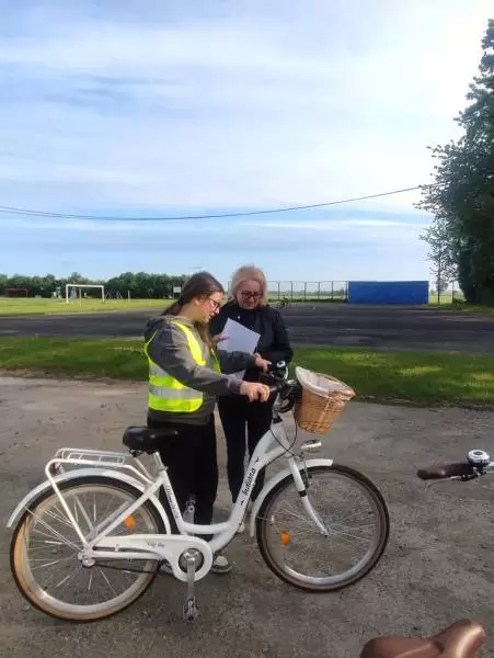 Dodatkowo, każdy kursant musiał zaliczyć szkolenie z pierwszej pomocy przedmedycznej pod okiem pani Moniki Cieślickiej, co pozwoliło na zdobycie niezbędnych umiejętności ratunkowych. Ostatnim etapem był egzamin praktyczny z jazdy na rowerze, przeprowadzony na placu manewrowym na boisku gminnym przez panią Violettę Leńską i pana Rafała Szulińskiego. Po złożeniu odpowiednich dokumentów w sekretariacie szkoły, uczniowie otrzymają Kartę Rowerową, która uprawnia do samodzielnego poruszania się rowerem po drogach.