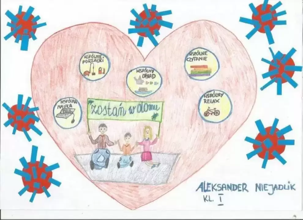 W Szkole Podstawowej im. Adama Mickiewicza w Udaninie odbył się konkurs plastyczny on-line pt. „My się wirusa nie boimy, ponieważ w domu z rodziną siedzimy”.