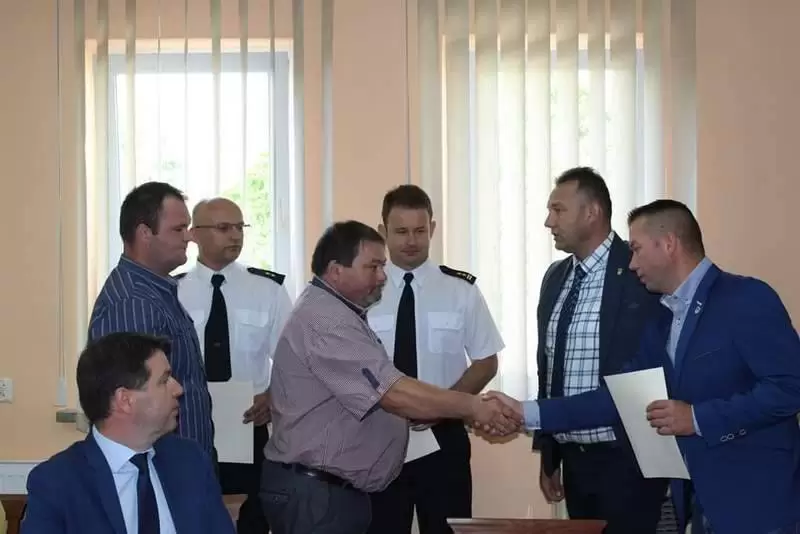 Następnie podziękowania wręczono strażakom za wsparcie i zaangażowanie podczas akcji niesienia pomocy mieszkańcom gminy Udanin, którzy ucierpieli w wyniku gwałtownych i intensywnych opadów deszczu 15 czerwca 2019 r. Podziękowania skierowano do bryg. mgr inż. Marka Wawrejko – komendanta powiatowego PSP w Środzie Śląskiej (podziękowanie odebrał bryg. mgr inż. Tomasz Imielski – zastępca komendanta powiatowego PSP w Środzie Śląskiej), mł. kpt. Wojciecha Lecha zastępcy dowódcy Jednostki Ratowniczo - Gaśniczej w Środzie Śląskiej oraz dla druha Bogdana Wilczaka - prezesa zarządu gminnego Związku Ochotniczych Straży Pożarnych RP w Udaninie.