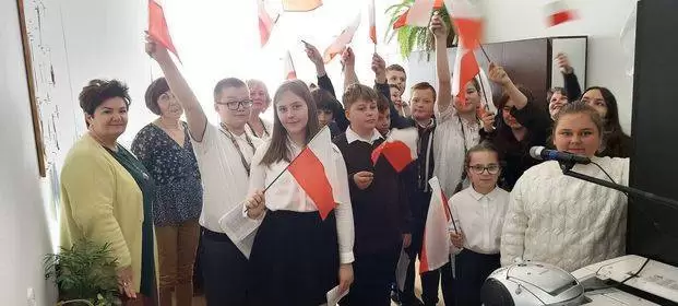 Piątoklasiści przypomnieli wszystkim uczniom ważne słowa: Bóg-Honor- Ojczyzna, które w historii Polski stanowiły hasło zagrzewające do walki i rozbudzania Polskości w duchu narodu. Przypomnieli również o potrzebie wywieszenia biało-czerwonej flagi na każdym naszym domu i dumie jaką czujemy, patrząc na ten symbol. Głos zabrała także pani dyrektor Bożena Basa, która w swojej wypowiedzi podkreśliła wagę tego wydarzenia. W szkole rozdano również ulotki, odnoszące się do tych ważnych momentów w historii naszego państwa.